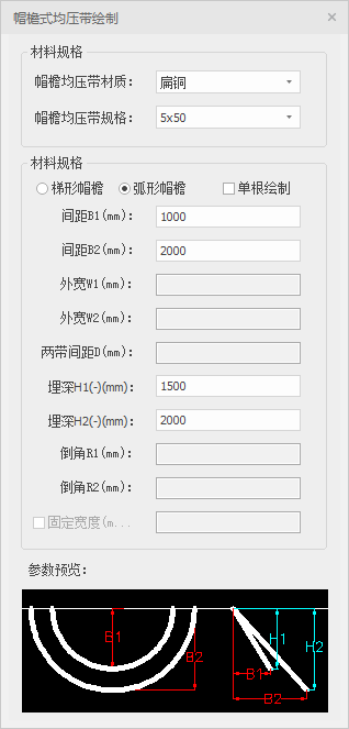 用于绘制帽檐式均压带。