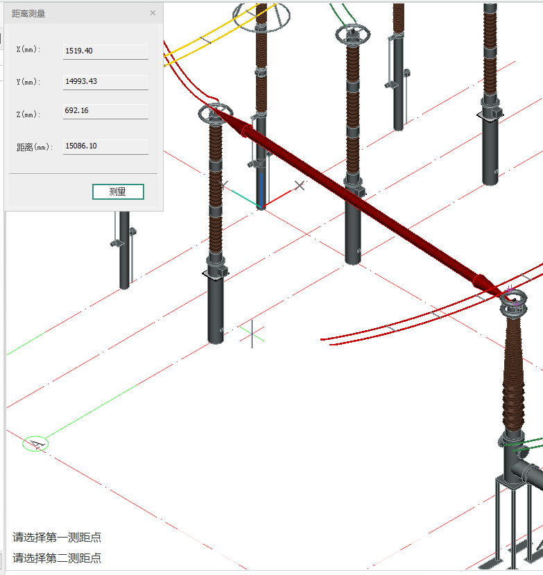 在工程场景中,使用该功能,可测量任意两点的xyz以及绝对距离