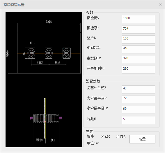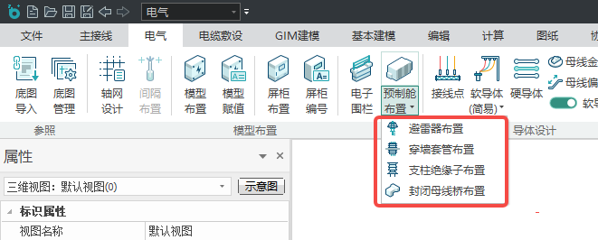 软件支持避雷器、穿墙套管和支柱绝缘子的参数化布置。