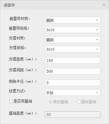 (2)设定避雷带参数及基础参数(如有)
