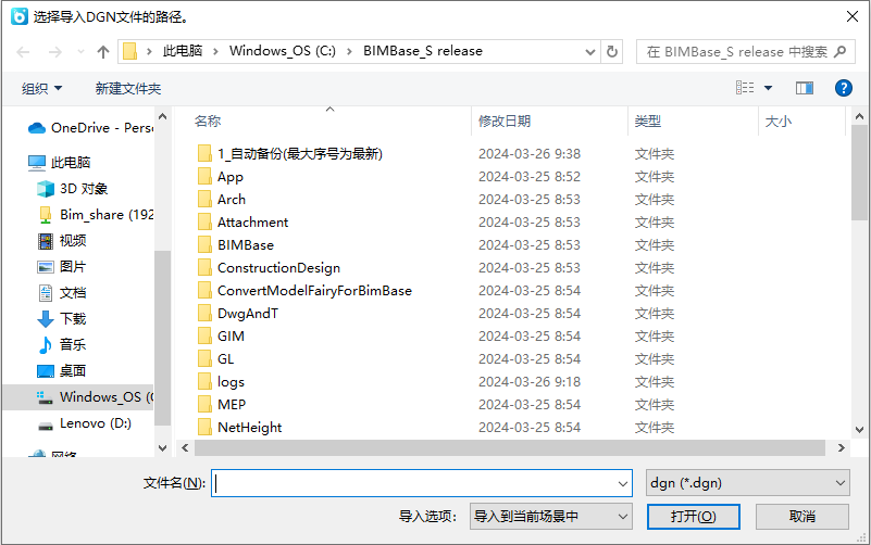弹出DGN文件选择框,如图。