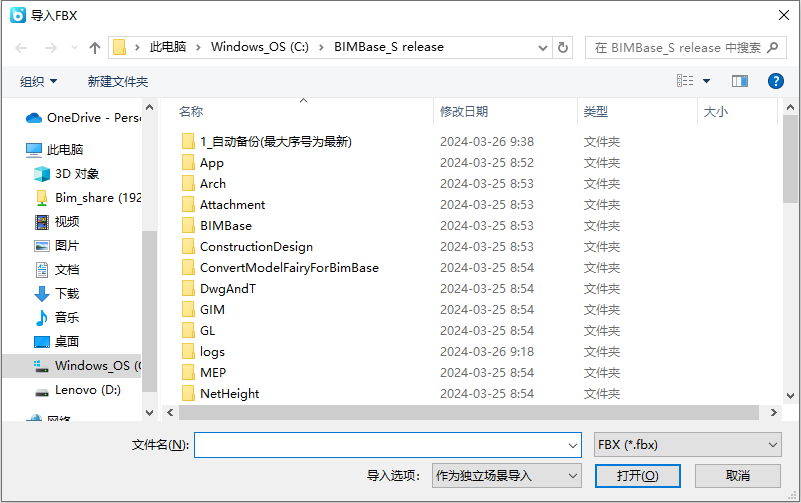 将硬盘中的FBX文件导入到当前模型中,可以进行查看、修改以及大场景的集成应用。