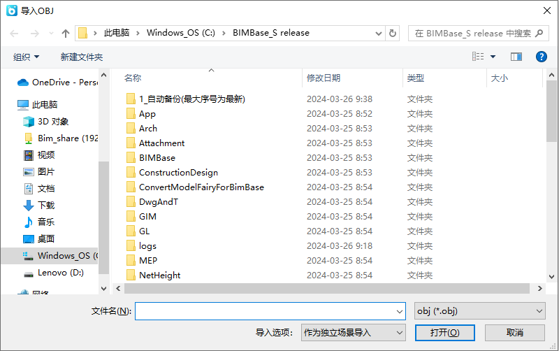 将硬盘中的OBJ文件导入到当前模型中,可以进行查看、修改以及大场景的集成应用。