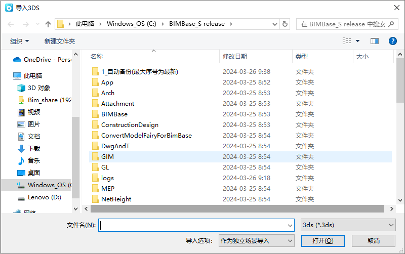 将硬盘中的3DS文件导入到当前模型中,可以进行查看、修改以及大场景的集成应用。