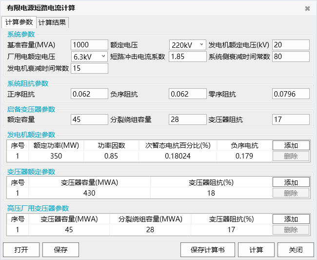 (1)在计算校核菜单栏下,点击“有限电源短路电流计算”功能按钮,激活命令,视口弹出以下对话框: