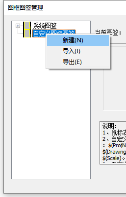 a)右键自定义图框图签,选择新建,完成新建文件夹;