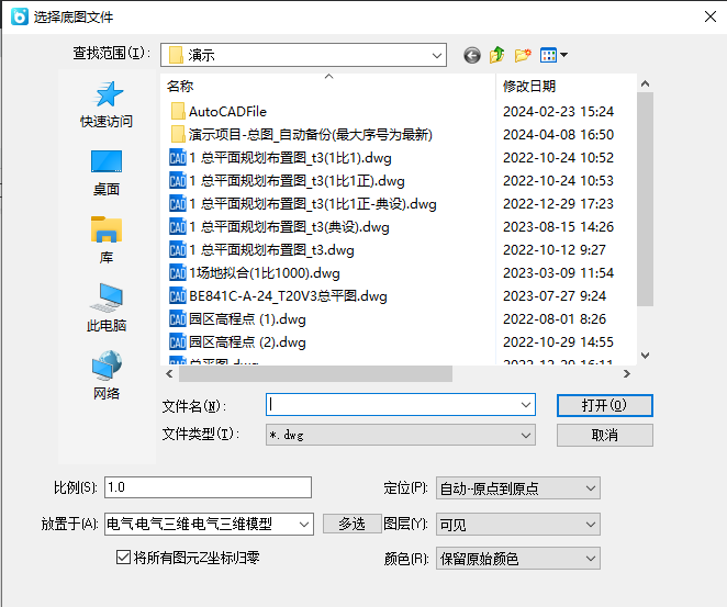 底图导入功能主要将.DWG格式文件导入到当前项目中作为底图,供各专业建模进行参照。