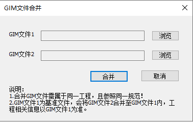 (1)在设计移交菜单栏下,点击“GIM文件合并”功能按钮,激活命令,工具栏弹出”GIM文件合并”对话框: