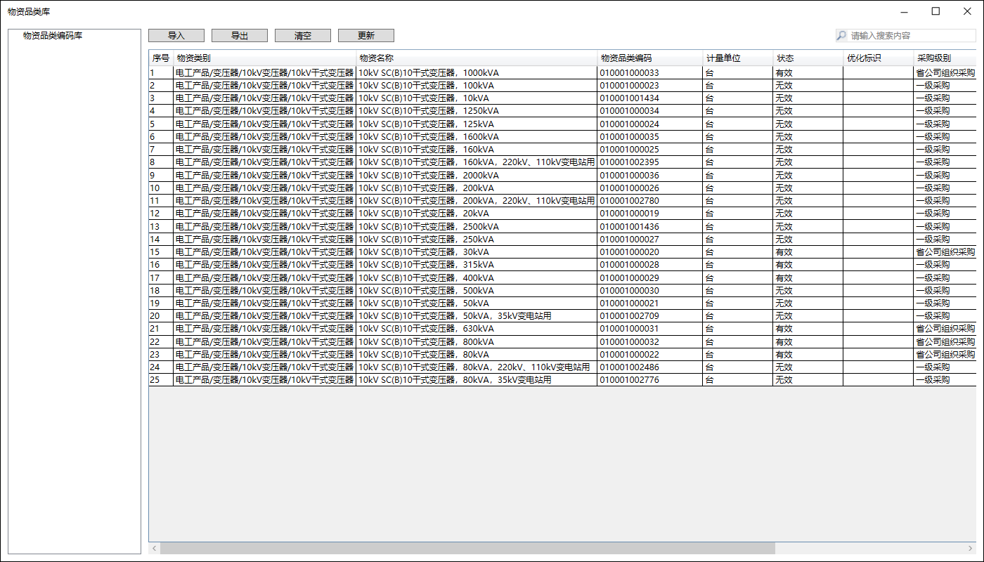 用于存储设备标准物料库。(注:本功能目前适用于南网公司