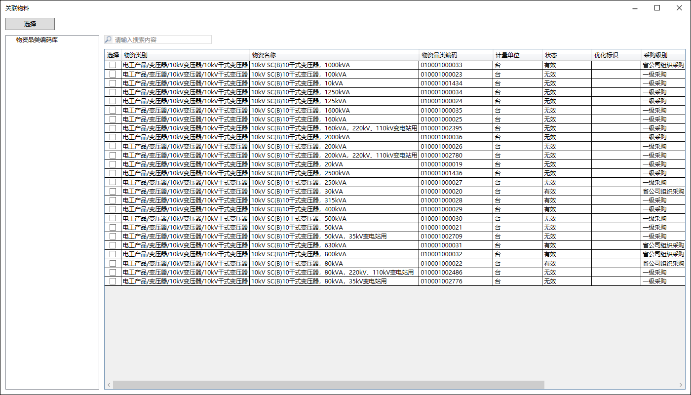 (3)关联物料:对设备材料关联的物资信息进行重新选型
