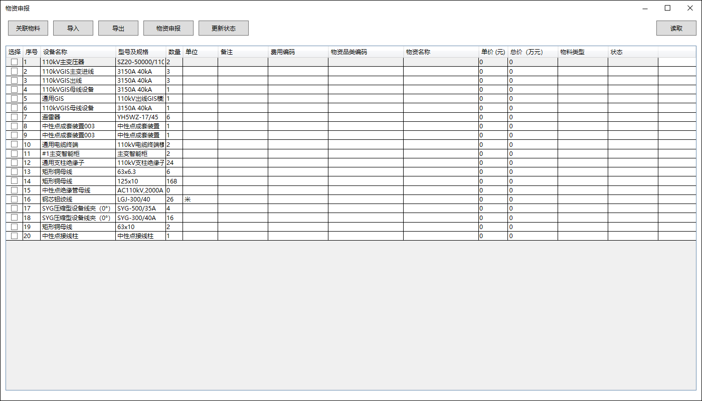 用于统计工程设备材料清册、物资申报。(注:本功能目前适用于南网公司