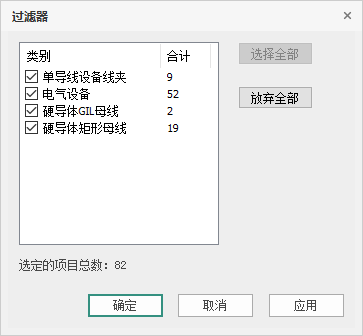 (3)对当前选择集中的对象进行过滤:取消构件类型前的复选,确定过滤选择集中的对象。