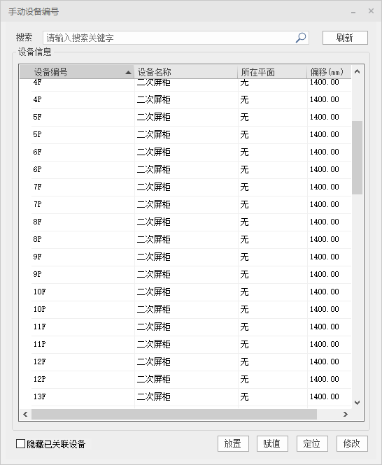 - 修改:将在列表中对所在平面及偏移所做的修改,同步刷新到项目中的设备上;