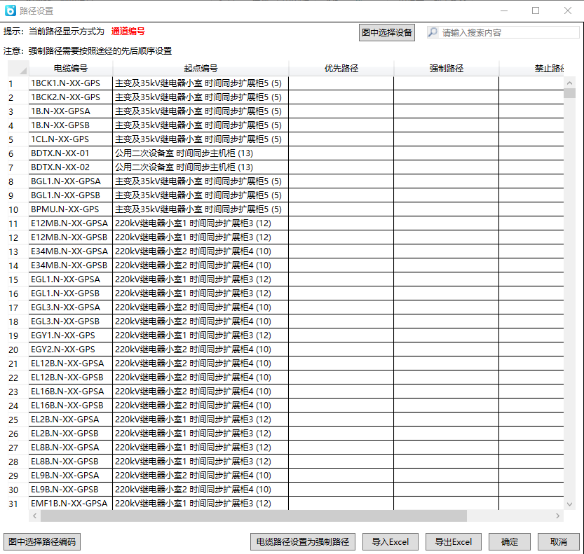 路径设置支持通道编号和节点编号,随平台路径显示方式设置。点击按钮后弹出以下界面:
