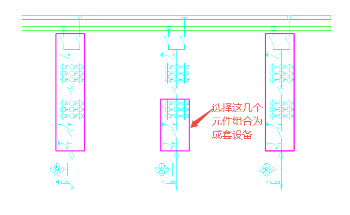 (4)点击“定义组合设备”功能按钮,激活命令,选择定义为组合成套设备的元件,右键确认,可以将选择的元件定义为组合设备;