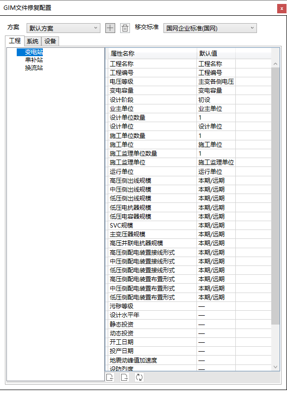 (2)可以配置多套方案,每套方案可设定对应不同标准下的默认移交属性值。
