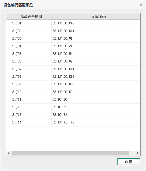 - 匹配预览:点击后弹出如下图对话框,对话框中将本次匹配结果列出,用户可检验匹配结果的正确性,确定无误后点击确定即可布置设备。