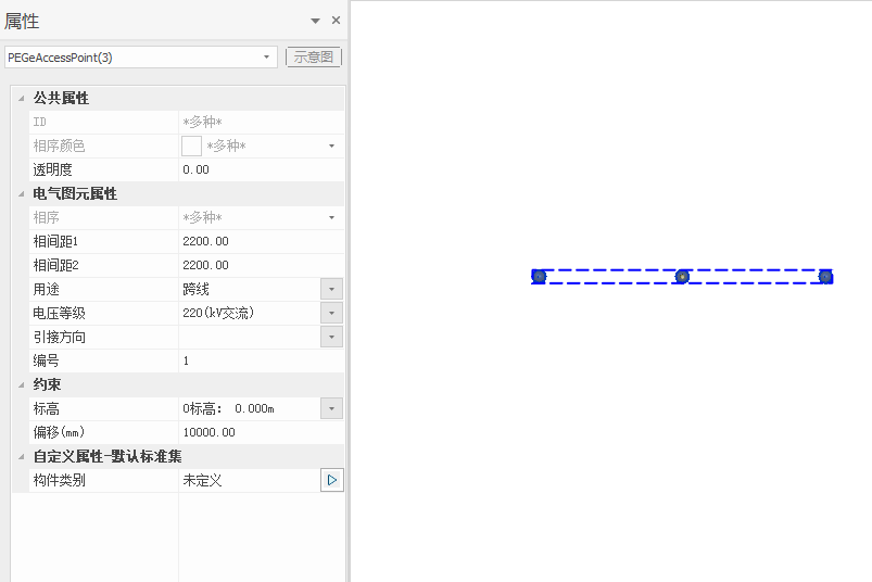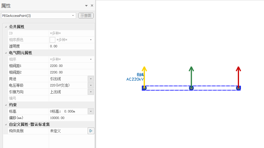 a.引出线接线点,<用途>选择“引出线”,<电压等级>根据实际情况选择,<引接方向>选择上出线或下出线