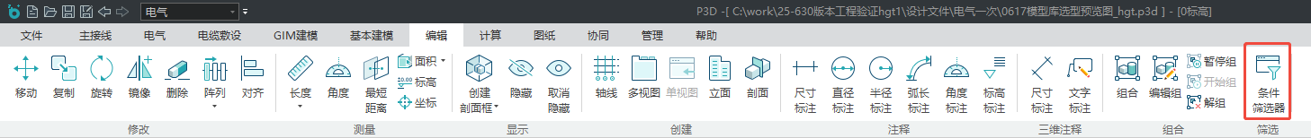 本功能可以实现通过属性栏和属性管理定义的值作为筛选条件,对视图中模型进行条件删选,满足条件的模型可添加到选择集中。