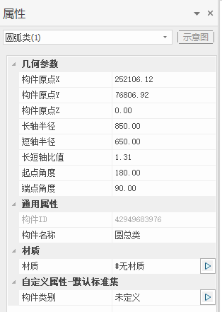 - 长轴半径、短轴半径:可以调整椭圆弧的长轴半径和短轴半径;