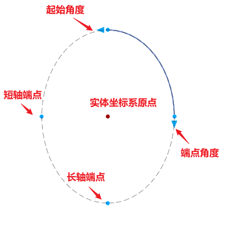 - 实体坐标系原点:拖拽夹点或者追踪器面板输入坐标参数可以移动椭圆弧的位置。