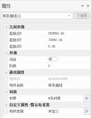- 构件原点XYZ坐标值:即样条曲线实体坐标系原点坐标值,可以改变样条曲线在空间中的位置;