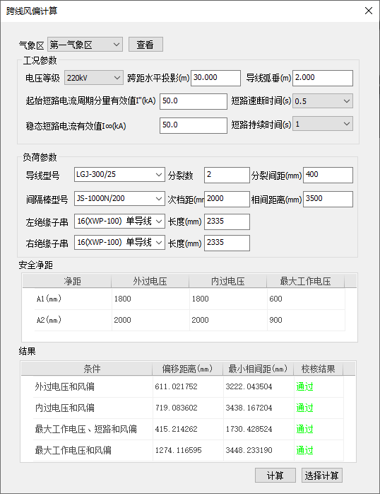 (2)设定计算参数点击计算按钮完成跨线风偏计算。