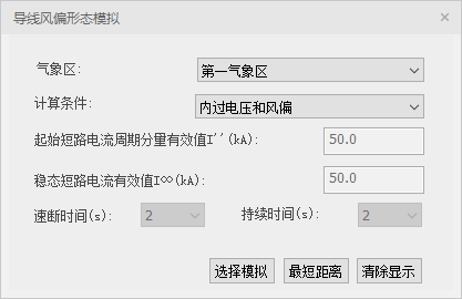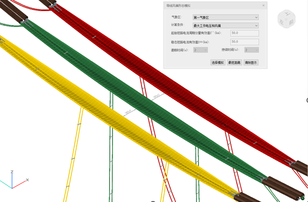 (1)在计算菜单栏下,点击“跨线风偏真实形态”功能按钮,激活命令,视口弹出以下对话框:
