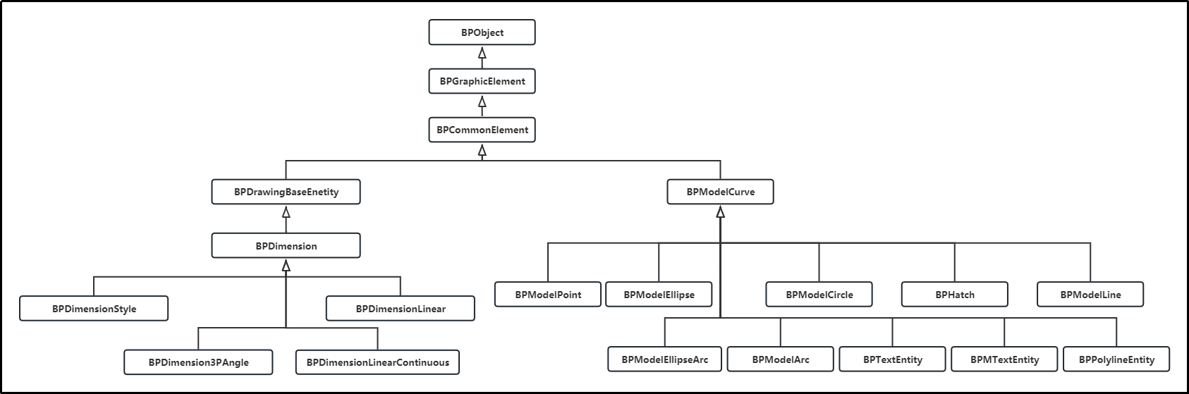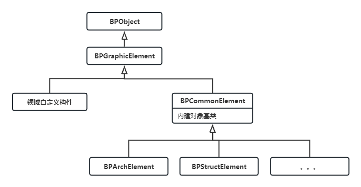 三维图形对象类图见图3-1,列出的是领域对象数据架构。自定义领域对象,可直接从BPGraphicElement继承,内建的专业对象继承自共同的一个基类BPCommonElement。