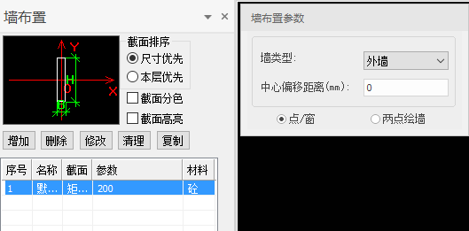 单击【墙】按钮,弹出墙截面管理和布置参数对话框,如图 2.7-6所示: