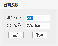 单击【增加】按钮,弹出如图 2.7-7所示的【截面参数】对话框,用户可对墙厚、名称等参数进行定义。完成后单击【确定】按钮,截面自动添加到截面列表中;点击【取消】,退出本次交互。