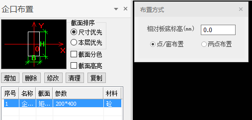 支持点/窗选已有洞口的内边线布置企口,程序会沿洞口内边布置企口;同时支持在洞口范围内任意选择两点布置企口。