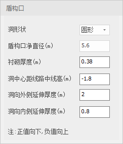 【衬砌厚度】盾构口外侧衬砌厚度。