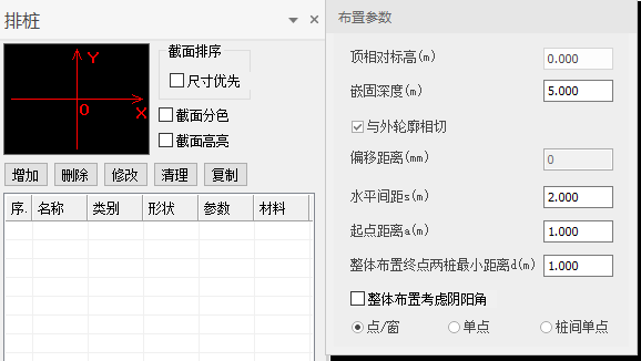 【复制】:选中排桩列表中某一种类型,再点击此按钮,可复制选中排桩类型。