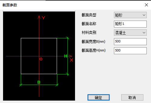 单击【增加】按钮,弹出截面参数对话框,如图 2.8-41所示,要求定义立柱截面形状类型、尺寸及材料(混凝土或钢材料),截面名称可不输入。