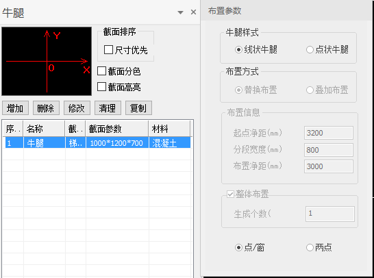 【布置方式】:分为替换布置和叠加布置,只有点状牛腿才支持该功能的选择,线状牛腿默认为替换布置。
