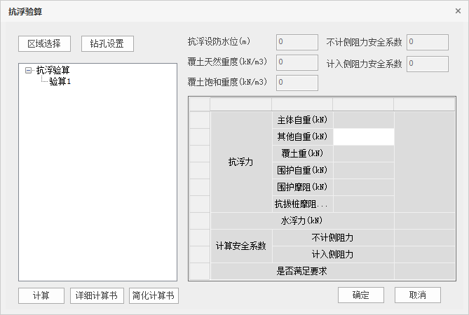 单击【抗浮验算】,弹出如下对话框:
