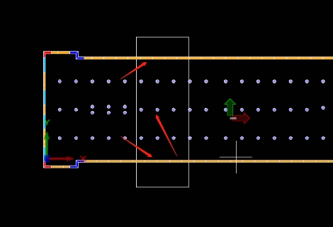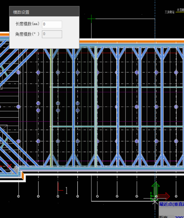 启动某个验算项后,在右侧输入相关参数,点击【区域选择】,在模型中选择要验算的目标区域(矩形区域),如图 4.3-5所示,该功能在X方向具有距离模数控制,填入【长度模数】后,可以精确控制X方向尺寸。