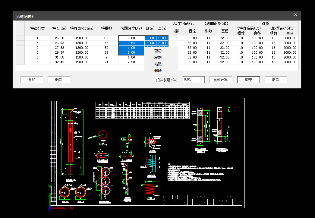 配筋表格编辑和归并功能同【地连墙配筋表】。