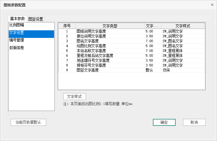 图 5.1-4图纸参数配置文字设置