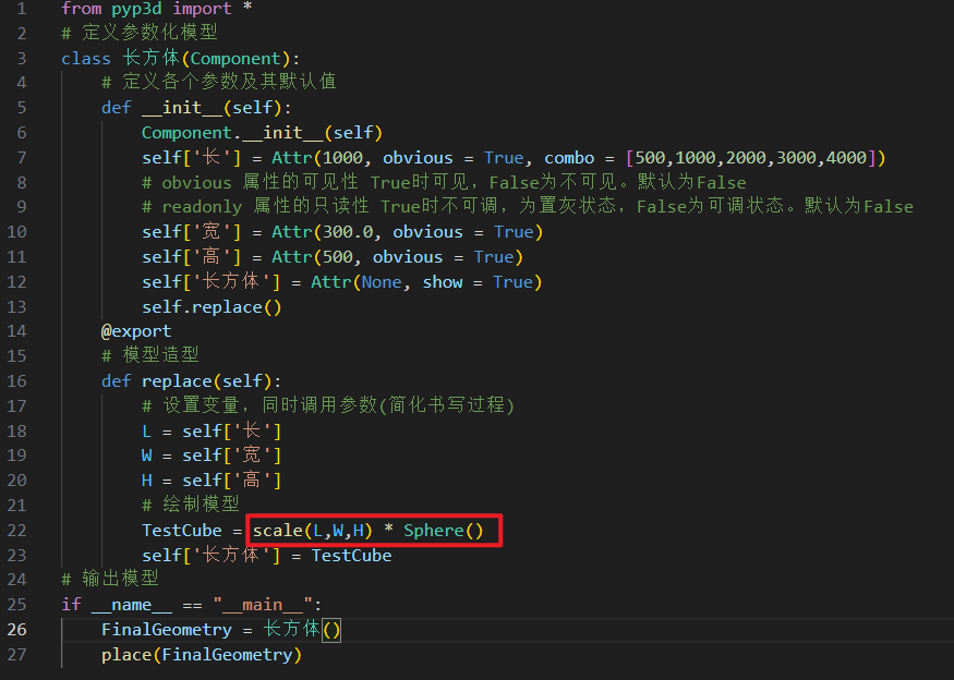 在部分情况下,即使造型部分代码有问题但终端不报错,体现在BIMBase中的情况就是无论如何点击,都没有模型布置出去,这时候就需要回去排查Python脚本,如下面这段代码: