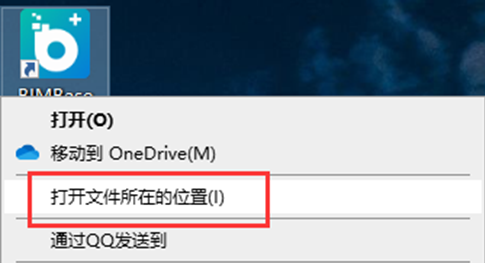 2.在BIMBase图标上点击右键,选择【打开文件所在位置】。