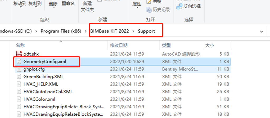 3.打开“Support”文件夹,找到GeometryComfig.xml文件。