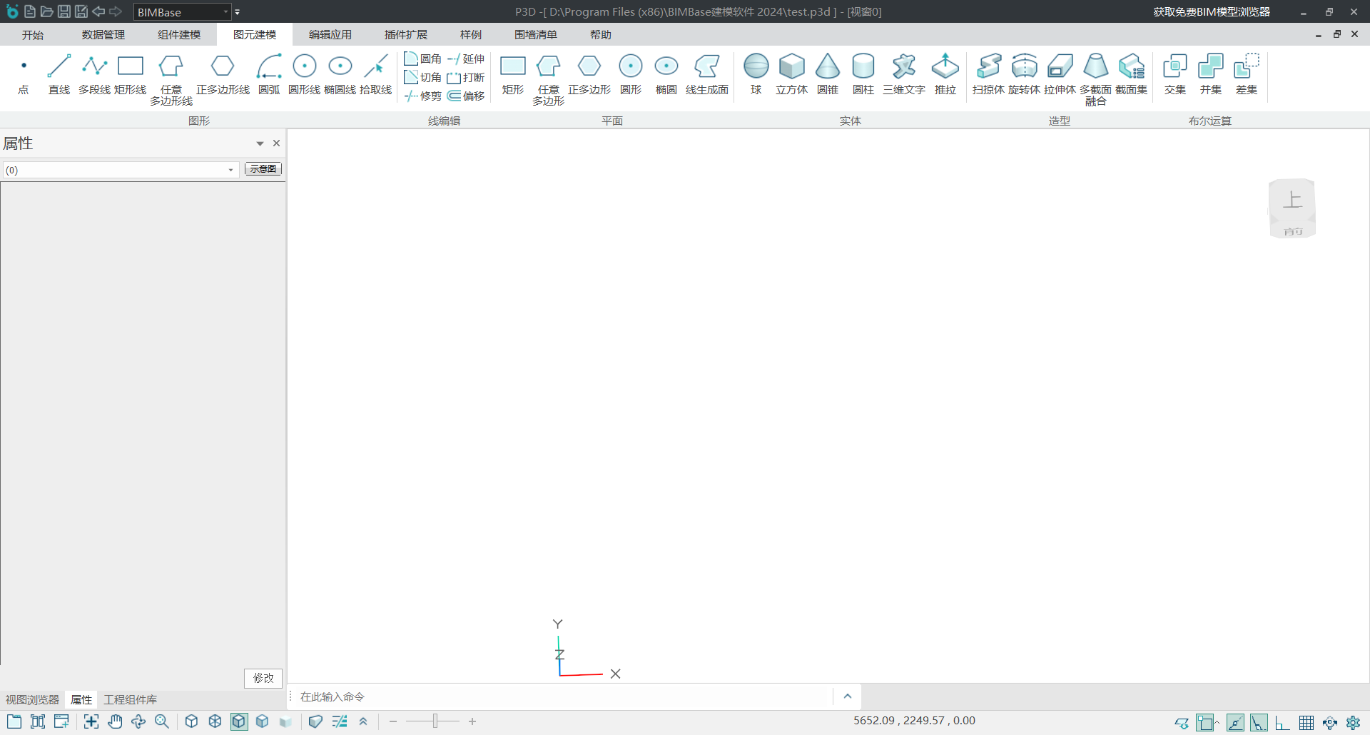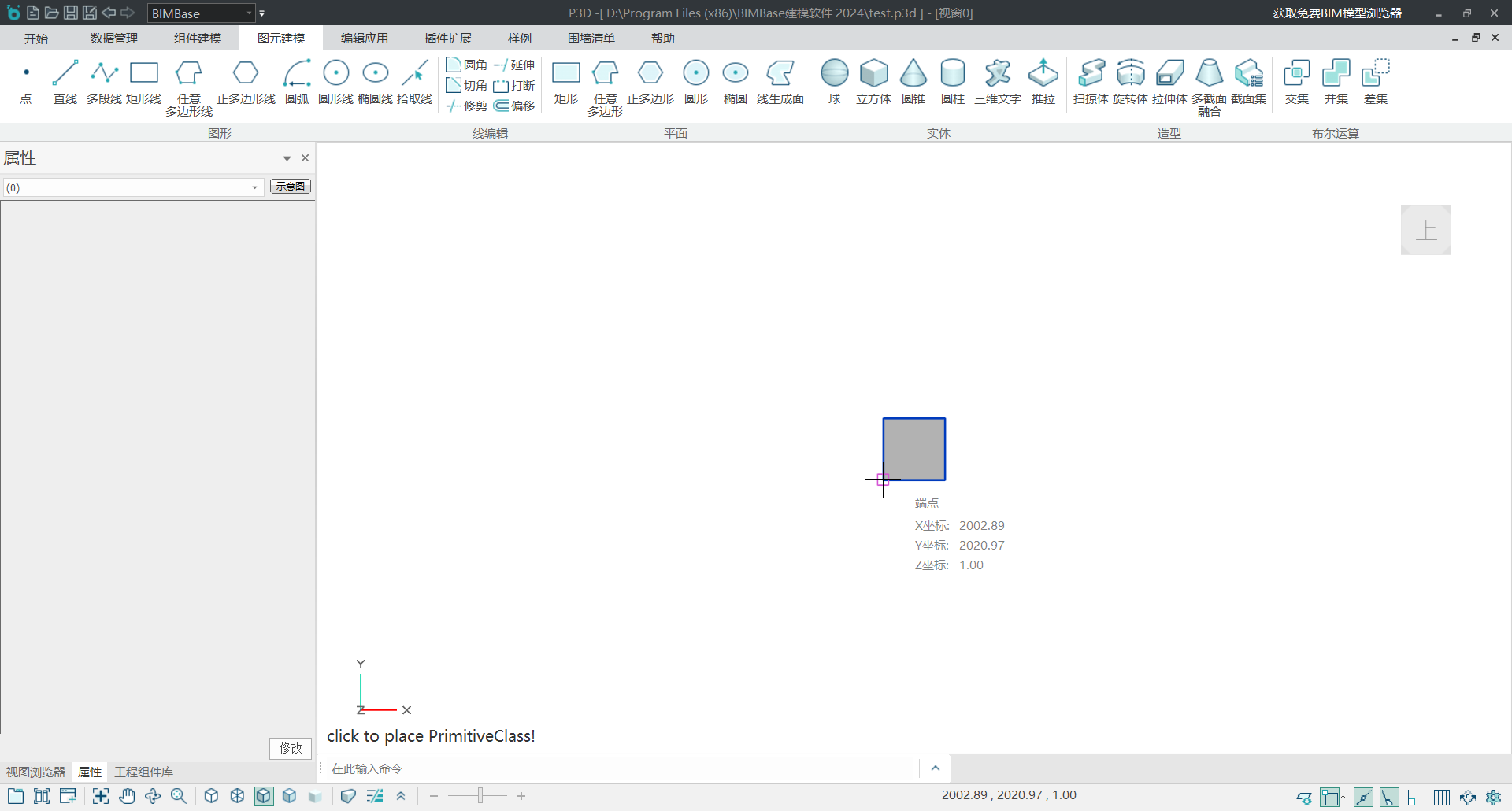 #启动布置工具,在BIMBase中布置单位长方体,长宽高均为1