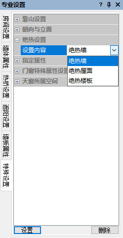 1.选择设置内容:绝热墙/绝热屋面/绝热楼板。
