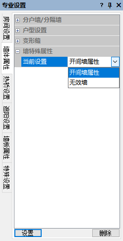 1.选择墙特殊属性类型:开间墙属性或无效墙。
