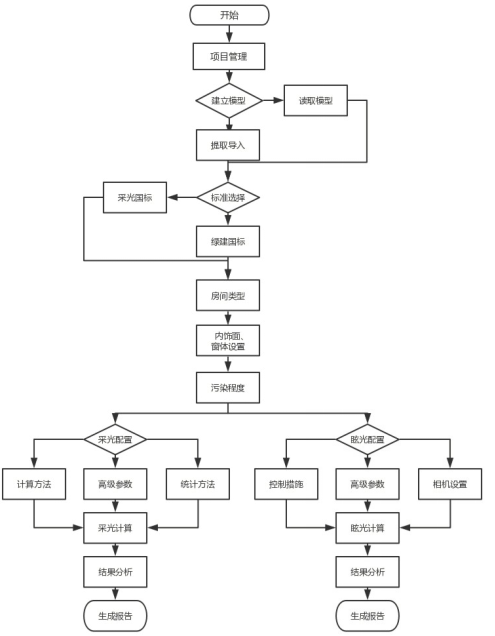 目录 搜索 展开 封面版权与商标说明第一章 安装与运行1.1 软件安装1.2 软件启动1.2.1 启动界面1.2.2 登录与授权1.3 操作界面第二章 模型建立2.1 楼层工具2.2 轴网工具2.3 构件创建2.4 其他通用建模功能第三章 管理3.1 文件管理3.2 .bdls导入与导出3.2.1 导入.bdls3.2.2 导出.bdls3.3 分析模型3.3.1 查看分析模型3.3.2 重置分析模型3.3.3 智能纠正内外墙3.4 模型属性3.4.1 项目信息3.4.2 建筑类型3.4.3 楼层属性3.4.5 阳台中庭3.4.4 指北针3.5 底图参照3.6 帮助第四章 节能设计4.1 标准参数4.2 专业设置4.3 材料编辑4.4 节能计算4.5 结果分析4.6 报告书第五章 能耗模拟5.1 标准参数5.2 材料编辑5.3 暖通空调5.4 负荷计算5.5 冷热源5.6 能耗计算5.7 动力系统5.8 可再生能源5.9 查阅报告第六章 碳排放6.1 建筑碳排放设计分析软件操作流程6.2 碳排放操作界面6.3 标准参数 6.4 建筑专业设计6.5 一键计算6.6 综合运行能耗及可再生能源6.6.1 节能权衡算法6.6.2 节能权衡算法结果查看6.6.3 时间表6.6.4 空调系统6.6.5 负荷配置6.6.6 负荷计算6.6.7 冷热源设置6.6.8 能耗配置6.6.9 系统能耗算法6.6.10 系统能耗算法结果查看6.6.11 照明能耗6.6.12 动力系统计算6.6.13可再生能源计算6.7 BIM建筑碳专业设计6.7.1 建材生产及运输(物化阶段,隐含碳)6.7.2 建造阶段(物化阶段,隐含碳)6.7.3 运行阶段(运维阶段,直接碳&间接碳)6.7.4拆除阶段6.7.5 绿化碳汇(减碳)6.8 碳排放计算6.9 结果分析6.10 减碳措施6.11 生成报告书第七章 绿建施工图7.1 标准选择7.2 专业设计7.3 条文评价7.4 项目提资7.5 报告输出第八章 天然采光8.1 BIM建筑采光模拟分析软件操作流程8.2 采光主要功能8.3 标准选择8.4 专业设计8.5 采光设计8.6 结果分析8.7 生成报告书第九章 构件隔声9.1 评价标准9.2 房间设置9.3 隔声设置9.4 空气声隔声9.5 撞击声隔声9.6 隔声分析9.7 生成报告第十章 室内风10.1 标准选择10.1.1 计算方法10.2 房间设置10.3 评价范围10.4 开启方式10.5 工况设计10.6 计算分析配置10.7 划分网格10.8 计算10.9 结果分析10.10 生成报告10.11 查看报告 暂无相关搜索结果! 8.1 BIM建筑采光模拟分析软件操作流程 8.1 BIM建筑采光模拟分析软件操作流程