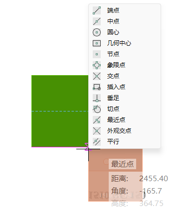 值得注意的是:软件中当某功能需要指定某点时,会自动开启对象捕捉,退出该功能时,会自动关闭对象捕捉,以帮助用户更方便地使用软件功能。