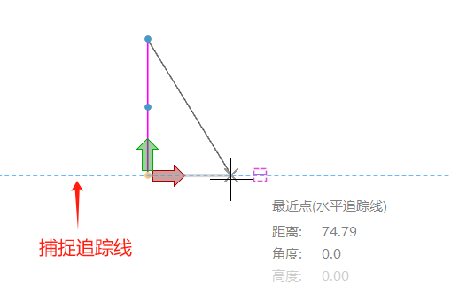 在对象捕捉设置页面中,还可控制是否开启对象捕捉追踪。当勾选后,将鼠标悬停于对象捕捉点上,待出现追踪标记(洋红色标记)后,可出现追踪线(如图1-3-中蓝色的虚线),方便点取捕捉追踪线上的点。对象捕捉追踪设置,详“极轴追踪”页面的介绍。