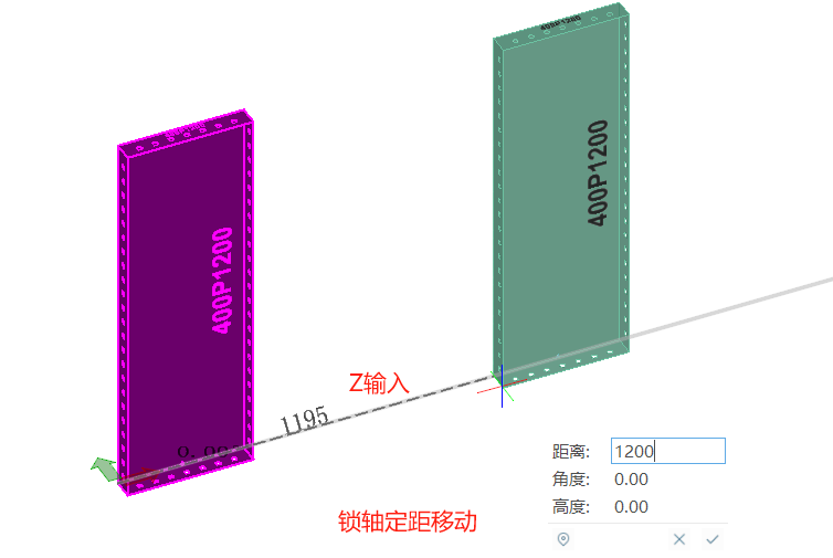 进入捕捉状态时,鼠标光标处会出现动态UCS,可以直接输入数值来定位构件移动的距离值,也可以按Tab切换到角度、高度、X坐标、Y坐标、Z坐标位置,输入我们想定位的数据,输入框后Enter键确定定位如图1-3-16。